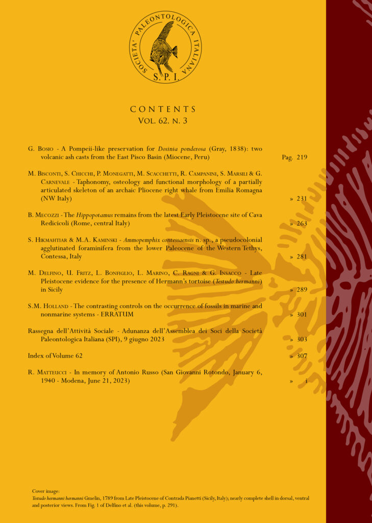 Taphonomy, osteology and functional morphology of a partially articulated skeleton of an archaic Pliocene right whale from Emilia Romagna (NW Italy)